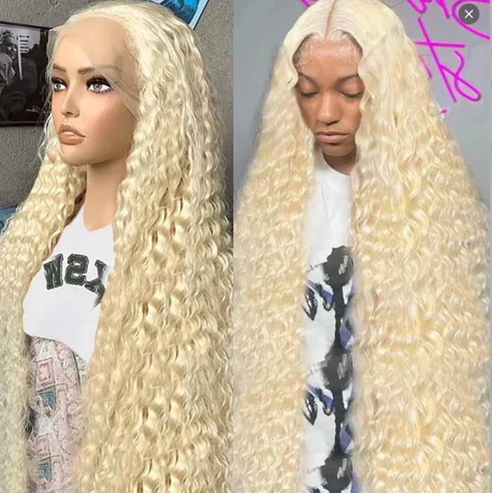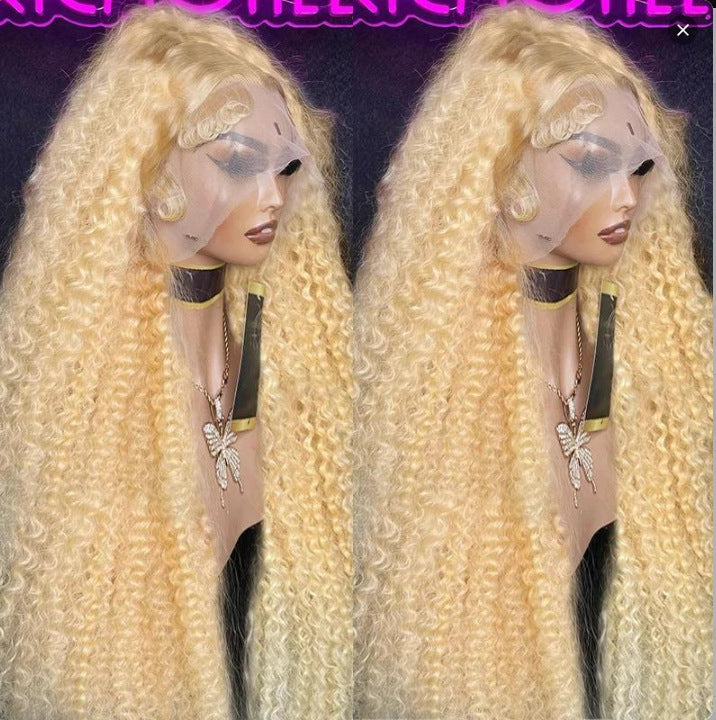Hand-woven Front Lace Synthetic Wigs Golden Big Wave Long Curly Hair