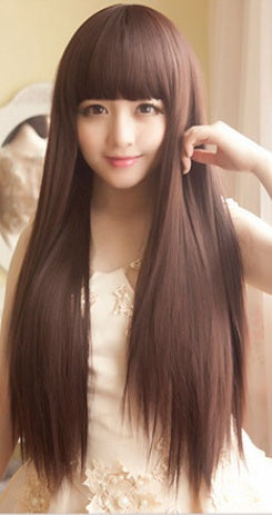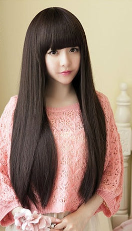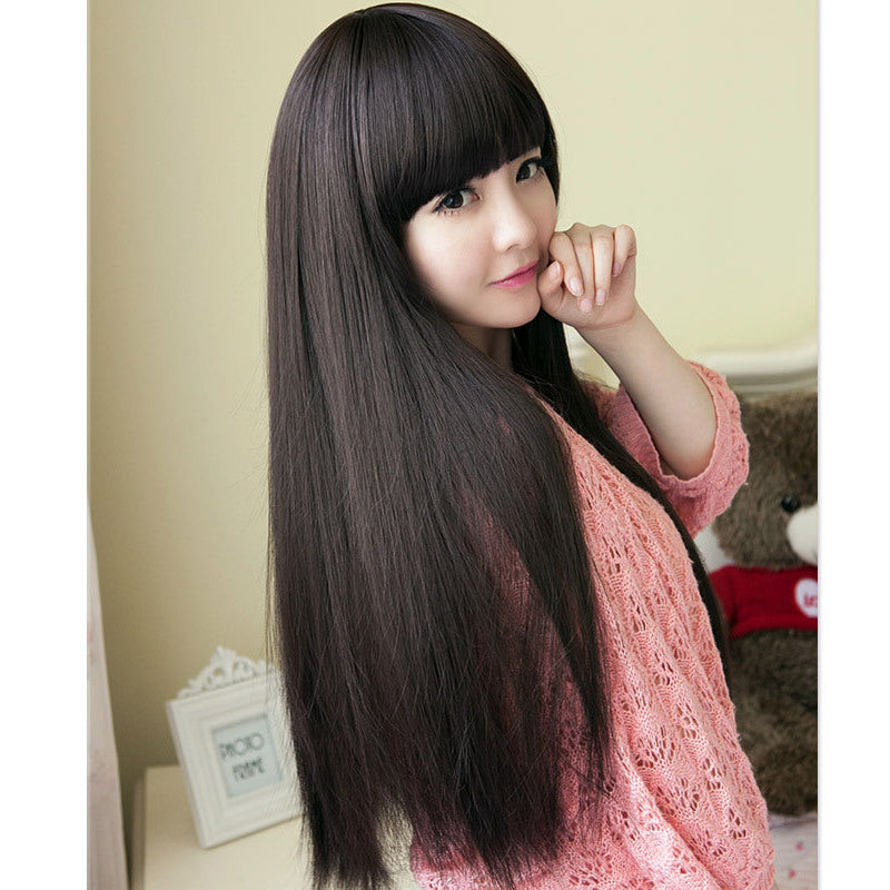 Wig Female Long Straight Hair Long Hair With Bangs And Pear Flower Head