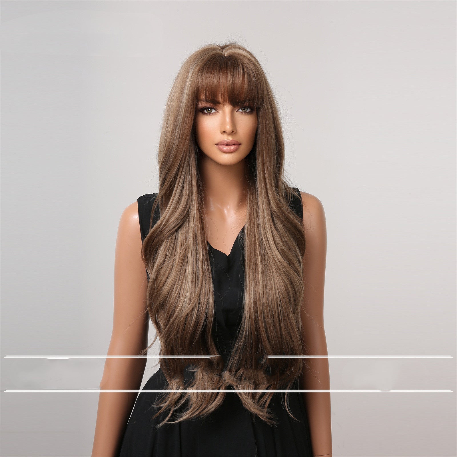 Product information: Treatment Process: hand woven Efficacy: beautiful and beautiful Color: 150% density,180% density Applicable face type: any face type Wig style: long straight hair center-parted bangs Applicable people: Ladies...